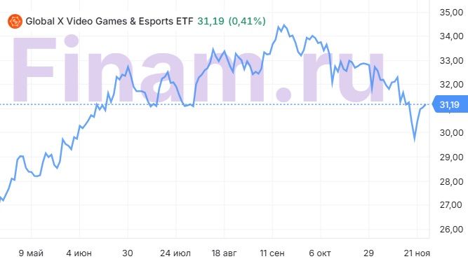 Мы подтверждаем целевую цену акций открытого биржевого фонда Global X Video Games & Esports ETF в $36,2 и повышаем рейтинг актива до «Покупать». Недавняя турбулентность технологического сектора США, связанная с сомнениями рынка в заключении сделки NVIDIA с OpenAI, а также с опасениями относительно сохранения ставки на декабрьском заседании ФРС, привела к коррекции ETF. Американский рынок вскоре развернулся, при этом просадку в HERO ETF рынок не успел откупить. Потенциал роста бумаги составляет 16,5%. Мы рассчитывали справедливую стоимость фонда по средневзвешенному апсайду компаний, входящих в него.