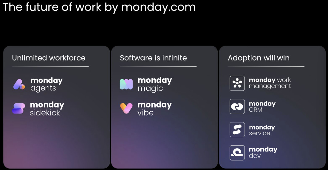Для monday.com искусственный интеллект сегодня — это не дополнительная функция и не ассистент, встроенный в интерфейс, а попытка перестроить саму логику продукта. Компания уходит от классического управления задачами к модели исполнения работы, где платформа берет на себя часть действий, решений и сборки процессов. Этот сдвиг принципиален: рынок чаще переоценивает именно тех игроков, которые превращают AI в измеримую ценность для клиента и отдельный источник выручки, а не просто в абстрактное улучшение пользовательского опыта.