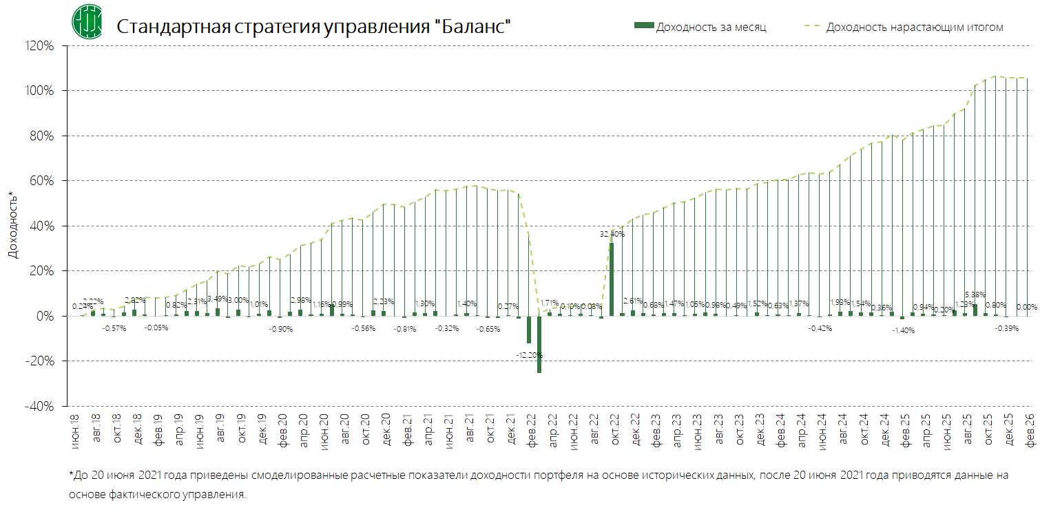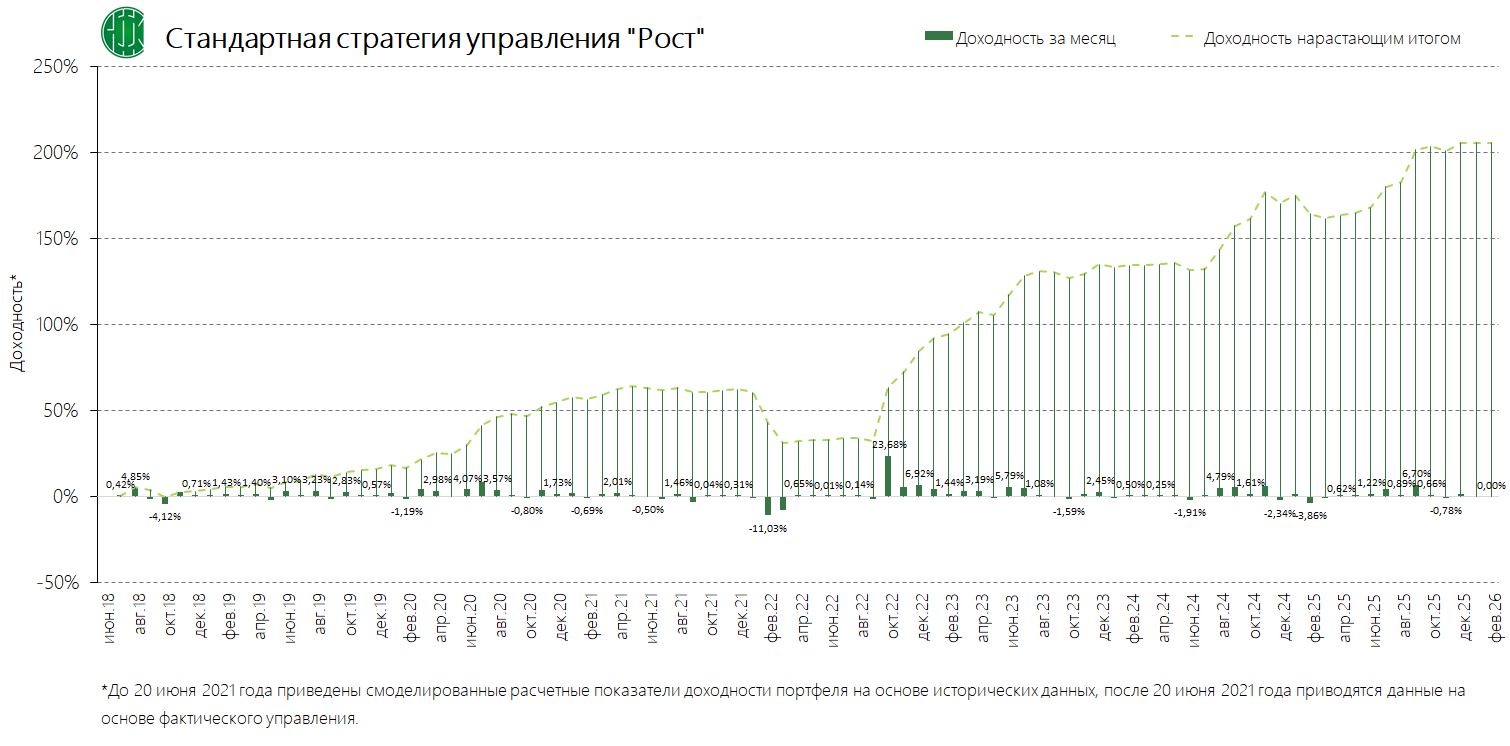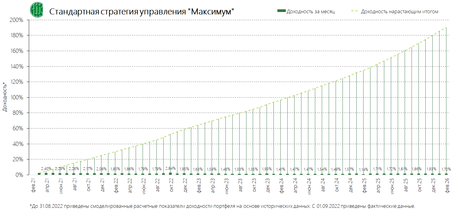 Стандартные стратегии управления (вместе со стандартным инвестиционным профилем и динамикой среднемесячной доходности)