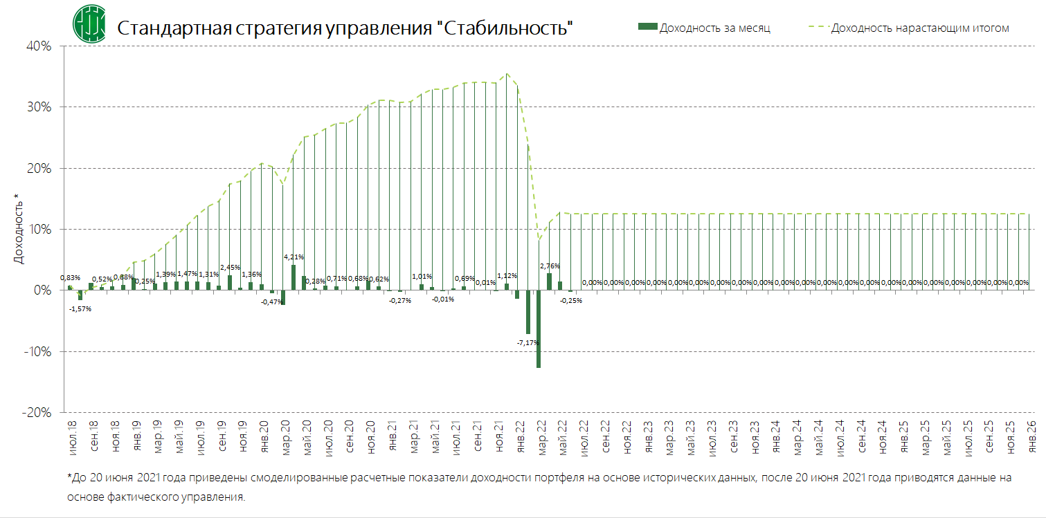 Стандартные стратегии управления (вместе со стандартным инвестиционным профилем и динамикой среднемесячной доходности)
